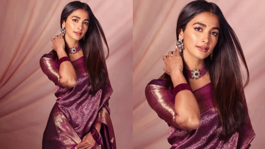 1. Pooja Hegde – Royal Look in Kanjivaram Saree
