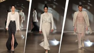 The duo’s signature tailoring was at the forefront — bandhgalas reimagined as everyday essentials, trousers styled for both power meetings and soirées, and jackets versatile enough to be worn in countless ways. The collection spoke to a new era of Indian couture, where glamour doesn’t have to be reserved for weddings and can just as easily belong to the modern professional’s wardrobe.