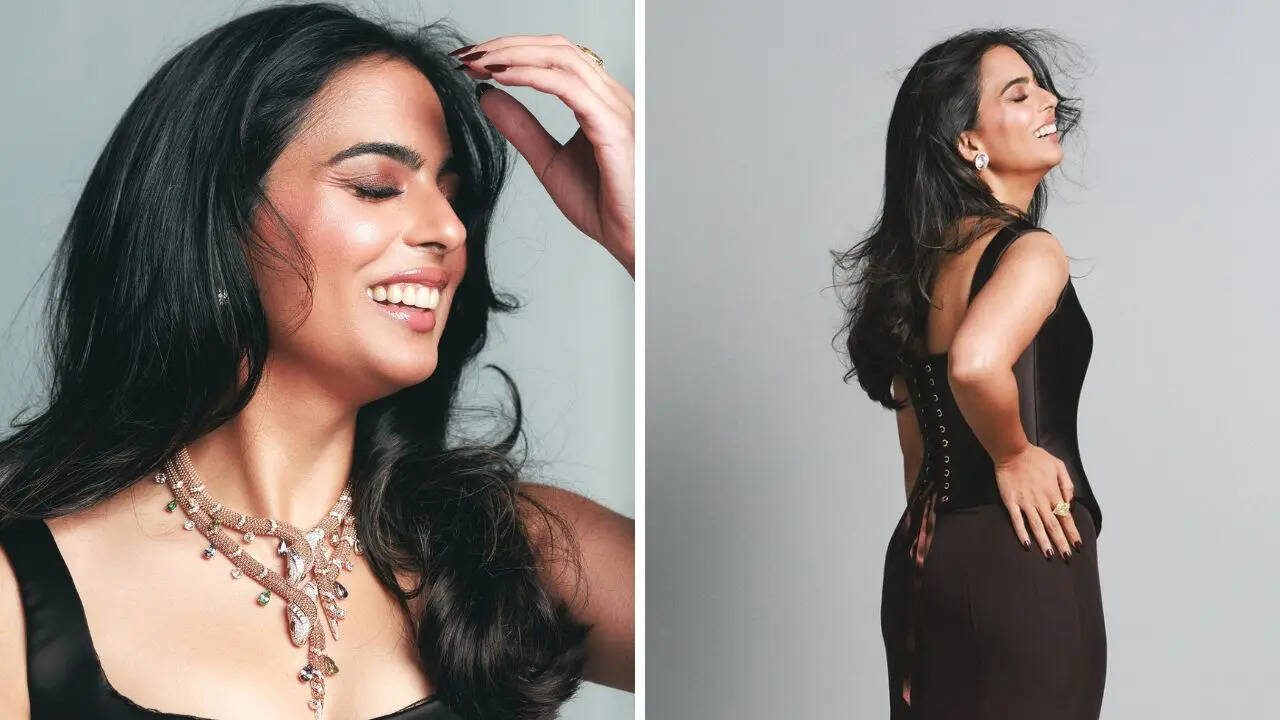 Isha Ambani captivated attendees with her ensemble, featuring a black couture gown by Ashi Studio and a rose gold Serpenti Divine Monsoon necklace adorned with tanzanites, tourmalines, rubies, and diamonds. Continuing her tradition, she wore a vintage yellow diamond Bvlgari ring from her mother Nita Ambani. However this collection was purchased in New York over 25 years ago.