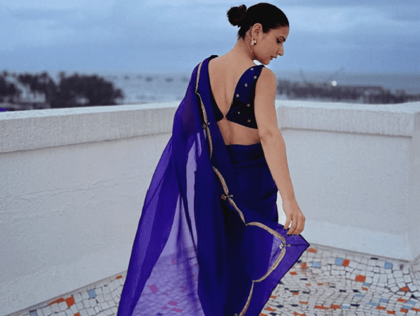 Fatima Sana Shaikh recently made a style statement in a cobalt blue sari by Raw Mango. The rich, saturated colour immediately draws the eye. It’s not loud — it’s regal.