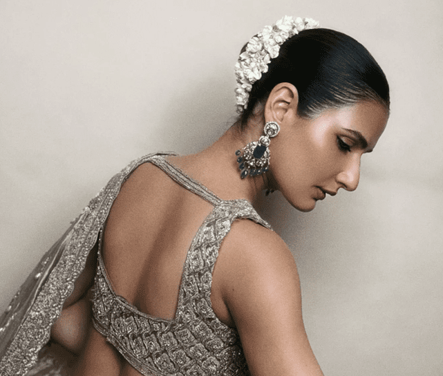 Her makeup leaned minimal, emphasizing a clean, natural complexion over heavy finishes. Her hair tied back, keeping the style elegant and letting the saree shine.