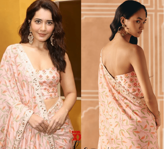 Raashii Khanna recently turned heads during the promotional circuit of her film Telusu Kada. She appeared in a pink floral saree, executing a graceful and softly glamorous look that aligned beautifully with her on-screen persona.