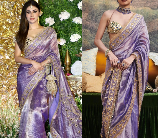 Mouni completed her look with Sanzany Jewels, adding subtle sparkle and sophistication to the outfit, while a House of Kosha potli bag offered a chic and functional accessory that harmonized with the overall ensemble.