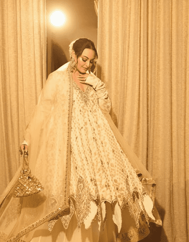 Actress Sonakshi Sinha recently made a statement with her festive appearance, donning a refined palette of ivory and gold that exuded understated luxury. The combination of soft neutrals and metallic sheen showcased her ability to embrace elegance while commanding attention.
