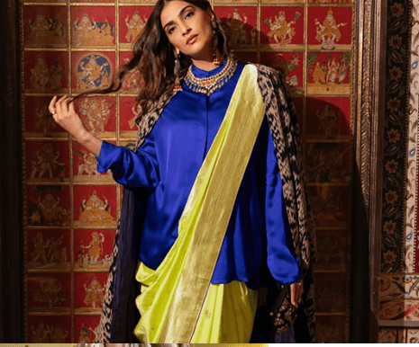 Sonam Kapoor’s Diwali Glam: Sunshine Yellow Saree & Cobalt Blue Shirt