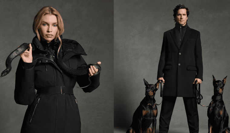 Shot in Los Angeles, the campaign imagery pairs Bomer and Maxwell with a striking cast of animals: an owl, a falcon, an indigo snake and two Dobermans. Each creature is symbolic : the owl stands for wisdom, the falcon for precision. Whereas the snake for protection and the Dobermans for dedication. These motifs are deeply tied to Mackage’s guiding slogan: “Aesthetics That Protect.”