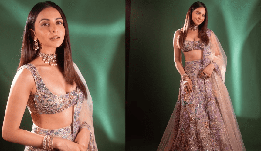 At her Diwali celebration, Rakul Preet Singh chose a soft, pastel-toned lehenga by Aisha Rao. According to media coverage, the outfit stood out for its delicate palette and refined detailing—balancing festive glamour with modern elegance.