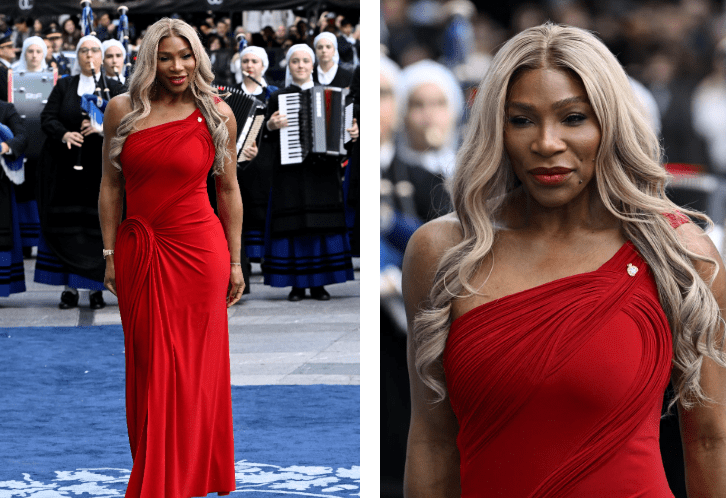 Secondly, the fashion choice underscores her dual identity: sporting icon and cultural style figure. The bold red hue and dramatic silhouette reflect confidence, power and celebration.