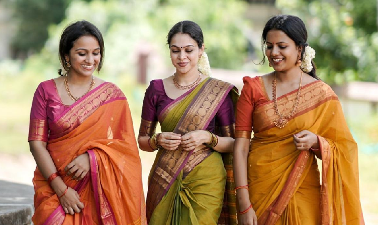 What makes them special is their storytelling quality — each panel of fabric almost becomes a canvas with scenes, motifs or botanical patterns. Because of this, they’re ideally suited for cultural ceremonies or festive gatherings where a touch of heritage is appreciated. With vibrant hues and artistic motifs, you’ll find that the saree does more than dress you — it declares your style.