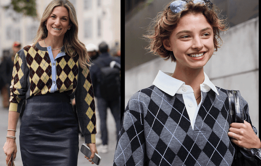 The diamond-print pattern known as argyle has made a strong comeback this season. Initially popularised on golf courses by the Duke of Windsor, the motif has since moved from sport to street style.