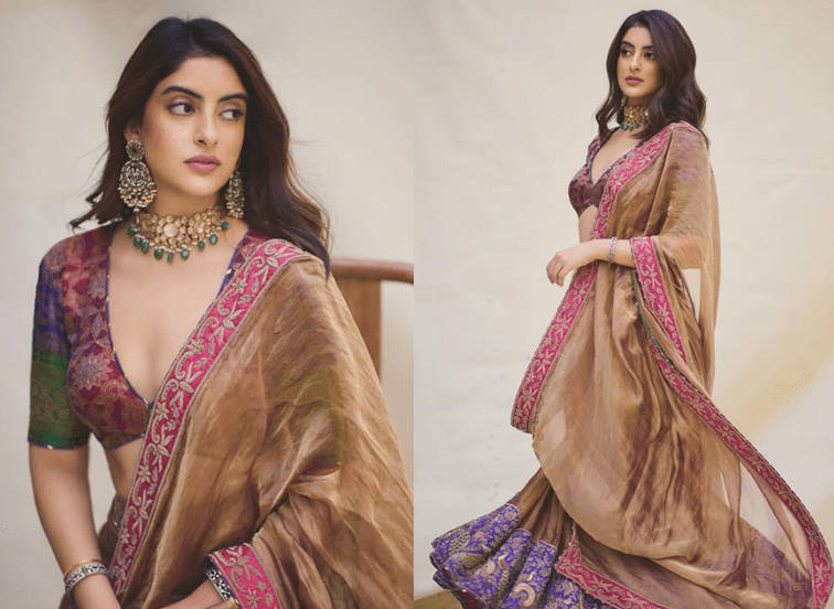 Styled with understated yet striking jewellery and sleek makeup, Navya’s look struck a balance between tradition and modernity, making a powerful fashion statement without overwhelming the senses. The use of soft gold tones added a luminous warmth to the ensemble, earning admiration from fashion fans and followers alike.