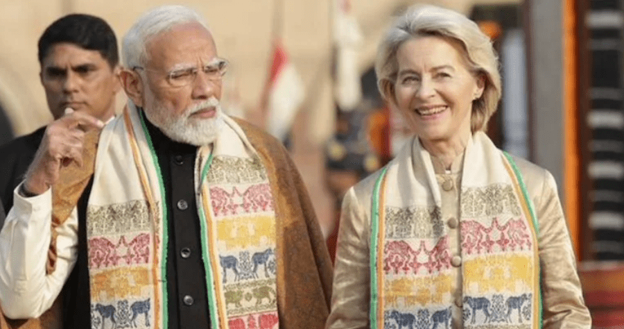 In a symbolic blend of culture and diplomacy, Prime Minister Narendra Modi and senior European Union leaders were seen wearing traditional Northeastern silk stoles during recent Republic Day celebrations, following the signing of a landmark India–EU free trade agreement after nearly two decades of negotiations.
